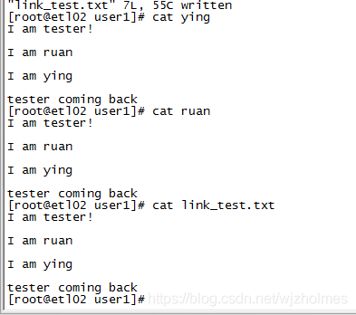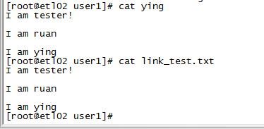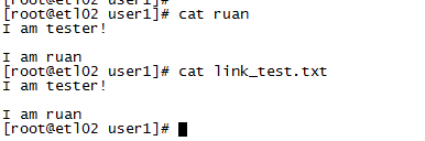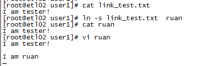 查看軟連接的內容和源文件內容一樣,接著編輯了軟連接后,查看軟連接和原測試文件