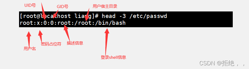 2.0 用戶(hù)賬號(hào)存儲(chǔ)文件作用: 保存用戶(hù)名稱(chēng),宿主目錄,登錄Shell等基本信息文件位置:/etc/passwd