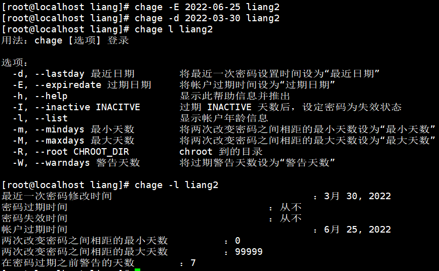 格式:chage 【選項(xiàng)】用戶(hù)名