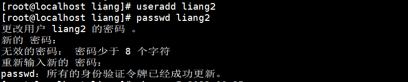 創(chuàng)建賬戶(hù)liang2,并且設(shè)置密碼