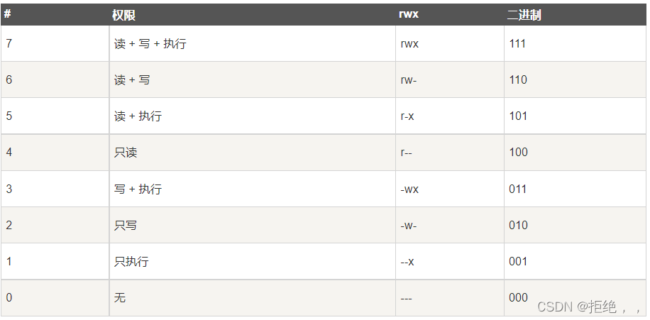 讀取r:允許查看文件內(nèi)容、顯示目錄列表寫(xiě)入w:允許修改文件內(nèi)容,允許在目錄中新建、移動(dòng)、刪除文件或子目錄可執(zhí)行x:允許運(yùn)行程序、切換目錄歸屬屬主(所有權(quán)):