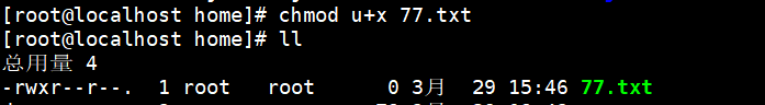 3.1.3.文件擁有者添加可執(zhí)行操作:chmod u+x 77.txt