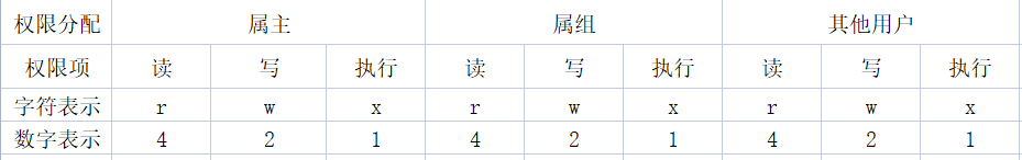 符號(hào)含義u屬主g屬組o其他用戶(hù)a所有用戶(hù)r讀w寫(xiě)x運(yùn)行權(quán)限+增加-去除=設(shè)置權(quán)限nnn3位八進(jìn)制數(shù)