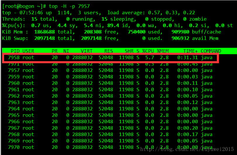 top -H -p 7957