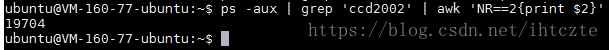 sudo kill $(ps -aux | grep 'ccd2002' | awk 'NR==2{print $2}')ps -aux | grep 'ccd2002'命令執行結果截圖如下
