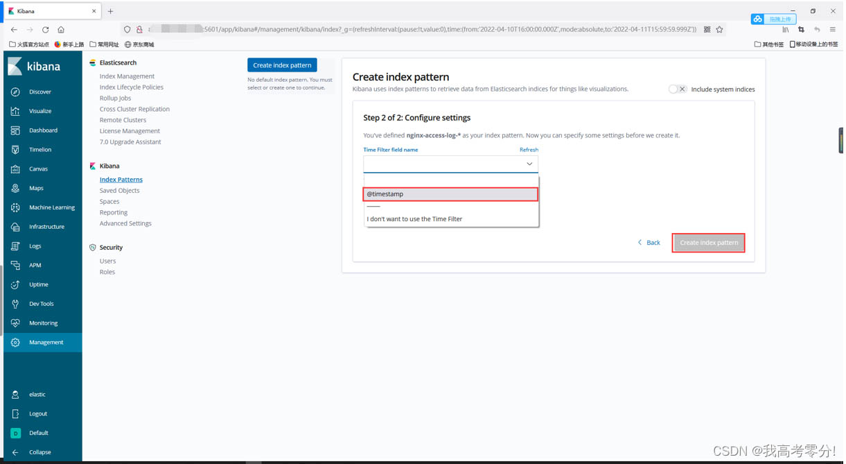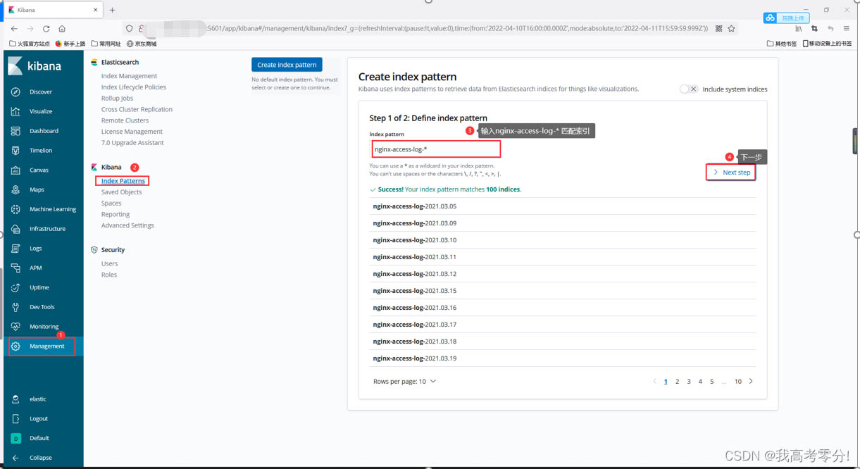 目錄一、安裝Logstash1.解壓tar包2.配置config目錄下的logstash.conf3.啟動(dòng)命令4.查看Logstash是否啟動(dòng)成功 二、配置應(yīng)用項(xiàng)目的logback環(huán)境1.在pom.xml中添加Logstash依賴2.在resouces目錄下添加logback-spring.xml三、在kibana界面查看數(shù)據(jù)1.查看索引管理2.配置索引模式總結(jié)一、安裝Logstash1.解壓tar包c(diǎn)d /data/app/elk/elk-6.8.5tar zxvf logstash-6.8.5.tar.gz2.配置config目錄下的logstash.conf# 數(shù)據(jù)輸入部分input { # 讀取nginx訪問(wèn)日志 file {#path:監(jiān)聽(tīng)文件的路徑,絕對(duì)路徑path => '/data/app/nginx/logs/access.log' #為Nginx的access.log路徑# 格式:jsoncodec => 'json'#start_position:監(jiān)聽(tīng)文件的起始位置,beginning:從文件的頭開(kāi)始讀取start_position => 'beginning'#type:自定義類(lèi)型type => 'nginx-access-log' } # 讀取nginx異常日志 file {path => '/data/app/nginx/logs/error.log' #為Nginx的error.log路徑# 格式:plain,輸入的是字符串,輸出把全部?jī)?nèi)容放到message字段codec => 'plain'start_position => 'beginning'type => 'nginx-error-log' }#filebeats方式beats {port => 5044type => 'beats_log'}#自定義端口,一個(gè)項(xiàng)目可對(duì)應(yīng)一個(gè)自定義tcp端口接收數(shù)據(jù)tcp {mode => 'server'host => '192.168.X.X' #IP地址port => 21022codec => jsontype => 'application-log' #application一般為項(xiàng)目名稱}}# 數(shù)據(jù)處理部分filter{if[type] == 'application-log'{mutate {rename => {'host' => 'hostname'}}}}# 數(shù)據(jù)輸出部分output { # beat監(jiān)控信息if [type] == 'beats_log'{elasticsearch { hosts => ['192.168.X.X:9200']manage_template => falseindex => '%{[@metadata][beat]}-%{[@metadata][version]}-%{+YYYY.MM.dd}' user => 'elastic' password => 'elastic2021'}} # nginx訪問(wèn)日志 if[type] == 'nginx-access-log' {elasticsearch { hosts => ['192.168.X.X:9200'] index => 'nginx-access-log-%{+YYYY.MM.dd}' # elasticsearch的用戶名、密碼 user => 'elastic' password => 'elastic2021'} } # nginx異常日志 if[type] == 'nginx-error-log'{elasticsearch{ hosts => ['192.168.X.X:9200'] index => 'nginx-error-log-%{+YYYY.MM.dd}' user => 'elastic' password => 'elastic2021'} }# 應(yīng)用系統(tǒng)日志if[type] == 'application-log'{elasticsearch {hosts => ['192.168.X.X:9200'] index => 'application-log-%{+YYYY.MM.dd}'user => 'elastic'password => 'elastic2021'}}}3.啟動(dòng)命令cd /data/app/elk/elk-6.8.5/logstash-6.8.5nohup ./bin/logstash -f config/logstash.conf &4.查看Logstash是否啟動(dòng)成功ps -ef | grep logstash
