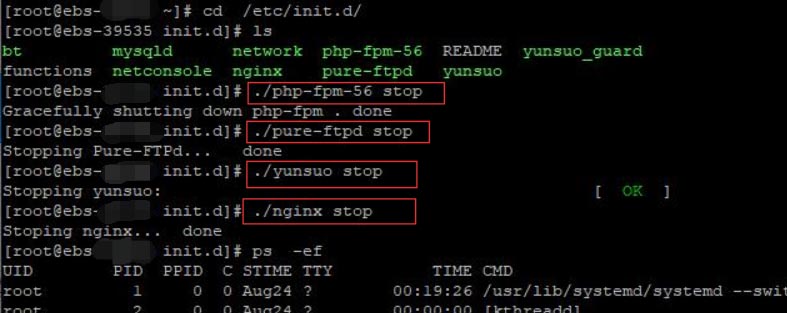 比如可執(zhí)行/etc/init.d/httpd stop 等命令停止正在運行的一些服務