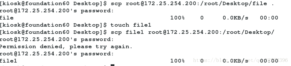 scp? /root/.ssh/id_rsa?? root@172.25.254.100:/root/.ssh/???? 在服務(wù)端給客戶端分發(fā)鑰匙(5)測試