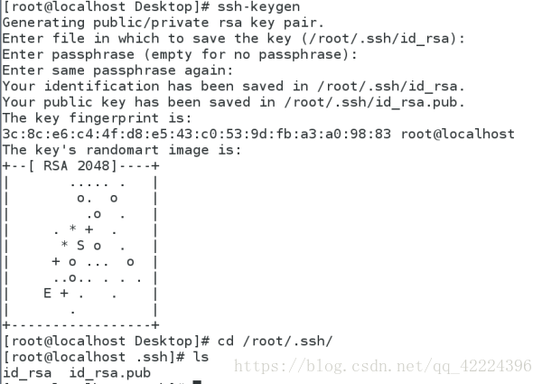 ? ?ssh-keygen 生成密鑰?? ?[kiosk@foundation60 Desktop]$ ssh-keygen ??? ?Generating public/private rsa key pair.?? ?Enter file in which to save the key (/home/kiosk/.ssh/id_rsa):?? 指定保存加密字符的文件(使用默認(rèn))?? ?Enter passphrase (empty for no passphrase):????????????????????? 指定設(shè)定密碼(使用空密碼)?? ?Enter same passphrase again:???????????????????????????????????? 確認(rèn)密碼?? ?Your identification has been saved in /home/kiosk/.ssh/id_rsa.?? id_rsa:私鑰 也就是鑰匙?? ?Your public key has been saved in /home/kiosk/.ssh/id_rsa.pub.?? id_rsa.pub:公鑰 也就是鎖?? ?The key fingerprint is:?? ?d6:7b:b6:49:21:43:08:5f:e8:6c:17:c7:74:62:64:5a kiosk@foundation60.ilt.example.com?? ?The key's randomart image is:?? ?+--[ RSA 2048]----+?? ?|????? .? ..+E .? |?? ?|?????? o.o.=oo?? |?? ?|?????? oo oo???? |?? ?|??????? +o.????? |?? ?|?????? .S.+ .??? |?? ?|?????? .?? + .?? |?? ?|????????? . +??? |?? ?|?????????? + o?? |?? ?|??????????? o??? |?? ?+-----------------+(2)查看公鑰和私鑰