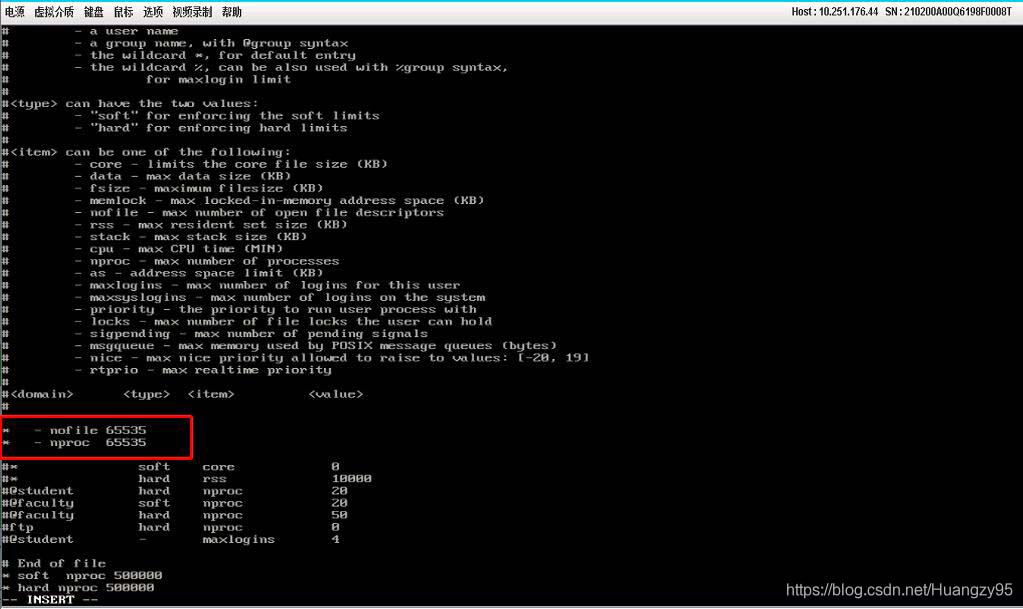 vim /etc/security/limits.conf * hard nofile 20000* soft nofile 15000* soft nproc 65535* hard nproc 65535之后,需要編輯文件/etc/pam.d/login配置文件,在最后添加以下一條內(nèi)容: