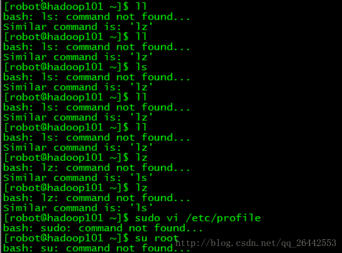 再比如hadoop fs -ls /robot bash: hadoop: command not found...,所以無論是自己安裝的軟件,還是系統自帶的軟件命令都不能正確使用。