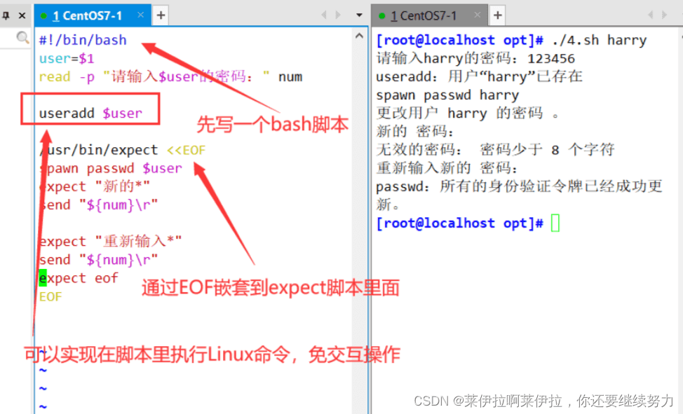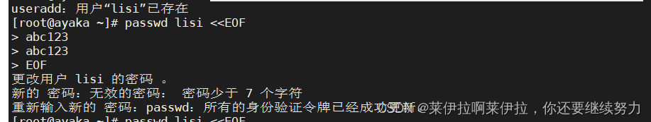 passwd lisi <<EOF>abc1234 #這兩行是輸入的密碼和確認(rèn)密碼>abc1234>EOF