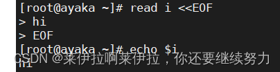通過 read 命令接收輸入并打印,輸入值是兩個 EOF 標(biāo)記之間的部分,作為變量 i 的值