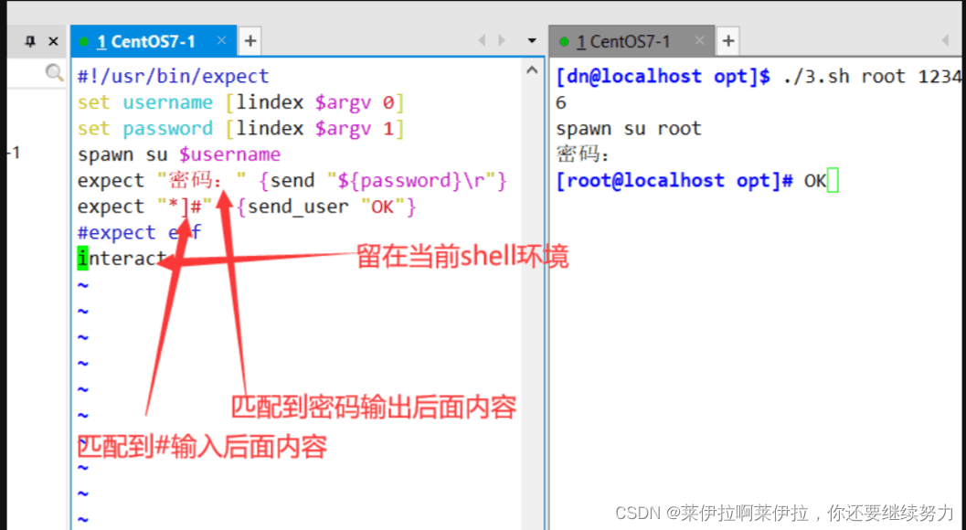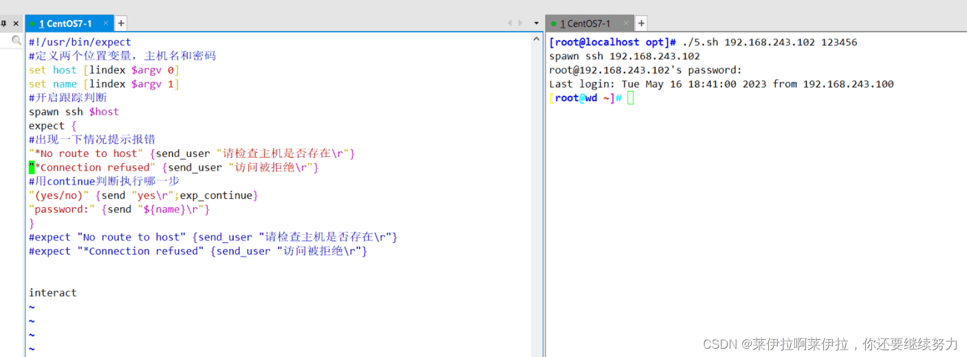 set hostname [lindex $argv 0] 相當(dāng)于 hostname=$1set password [lindex $argv 1]相當(dāng)于 password=$2實驗expect直接執(zhí)行,需要使用 expect 命令去執(zhí)行腳本