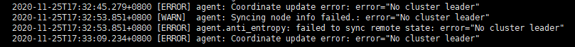 啟動Consul集群組件后,會看到如下信息(No cluster leader):