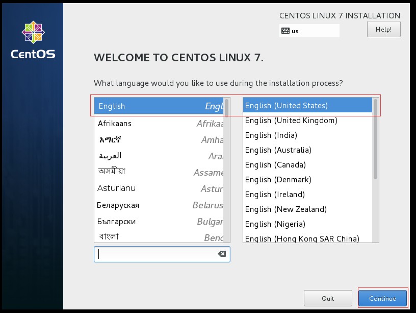 十六、進入選擇語言界面,這里選擇默認(可以根據自己需要進行修改),然后點擊“continue”按鈕進入下一界面: