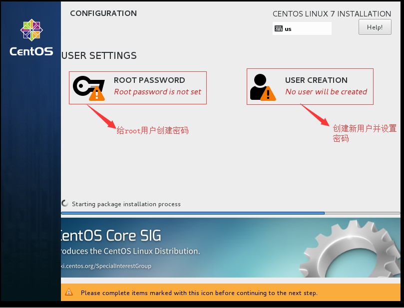 二十、進入下一界面,這里需要給root用戶創建密碼,或者新創建一個用戶并設置密碼,這里選擇給root用戶創建密碼: