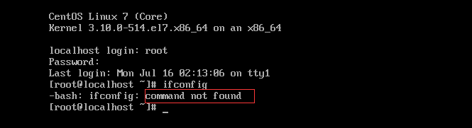 這時你會發現會提示command not found,說明安裝的CentOS是簡易版本的,其中一些命名沒有,需要我們手動進行安裝。安裝步驟如下: