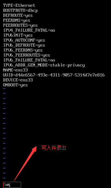 先按一次鍵盤上面的退出鍵(Esc),在輸出鍵盤上面的冒號“:”,然后輸入wq。w:write表示寫。q:quit表示退出。