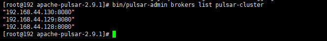 bin/pulsar-admin brokers list pulsar-cluster