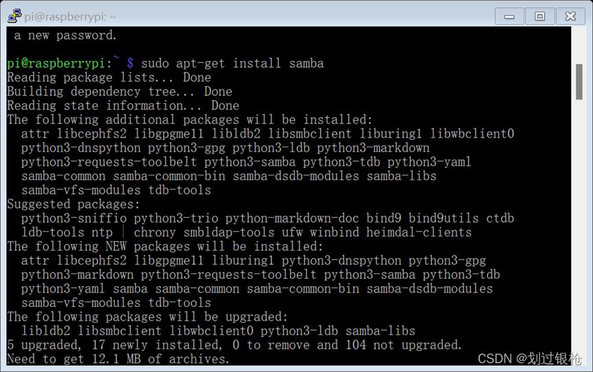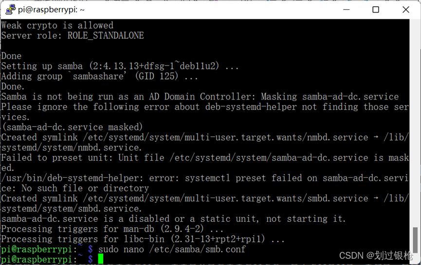 sudo smbpasswd -a pi密碼:raspberry重啟samba服務:sudo systemctl restart smbd
