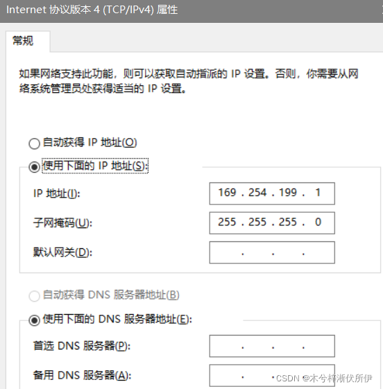 第一處填的ip 地址,要和上面win10主機配置的一致。第四個字段填0,否則和掩碼沖突。 子網網關(DNS)的第四個字段填1,2都行。