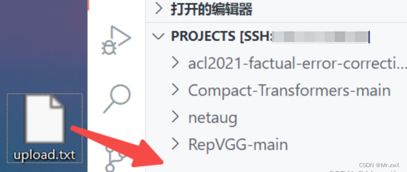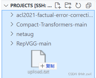 將本機的文件,直接拖入vscode的目錄欄中,即可實現文件的上傳,無需繁瑣的scp命令進行上傳。