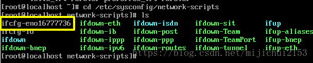 打開eno16777736文件,該文件所在路徑是/etc/sysconfig/network-scripts/,cd過去如下所示: