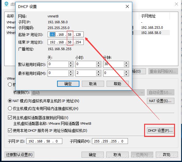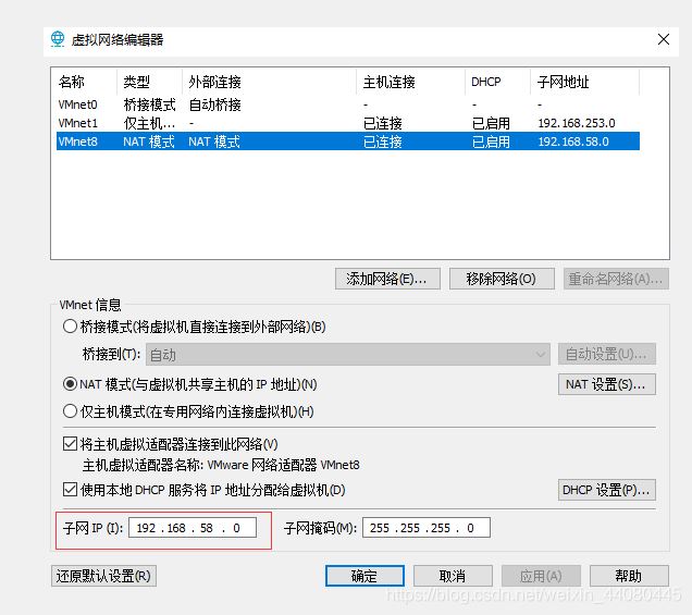 這里我貼上還原默認設后的VM8的子網IP,網關IP(網關),起始和結束IP地址。