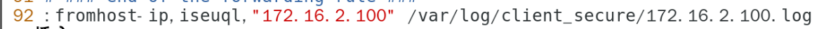 :fromhost- ip,iseuql,"10.99.8.6" /var/log/client_secure/10_3.log:fromhost- ip,iseuql,"10.99.8.2" /var/log/client_secure/10_12.log