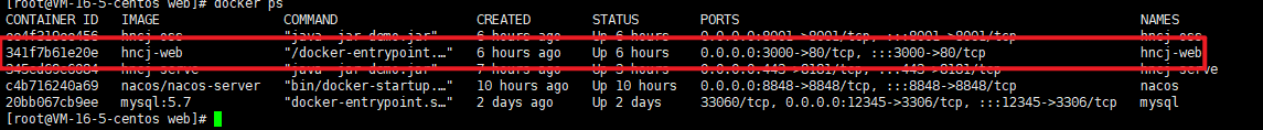 這里我的容器名字叫hncj-web