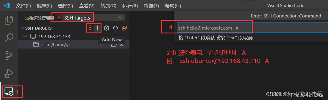 打開vscode遠程管理器進行免密登入配置,如下圖例操作: