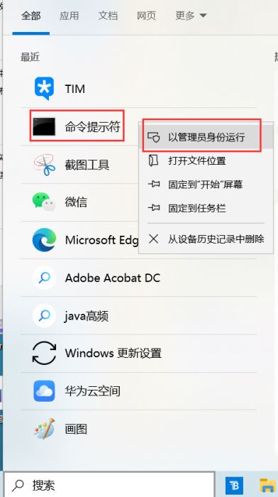 查看方式:搜索中搜”命令提示符“以管理員身份打開