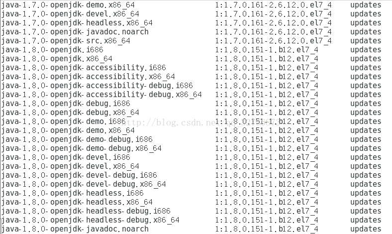 列舉匹配已安裝的java的軟件包:yum list installed | grep java