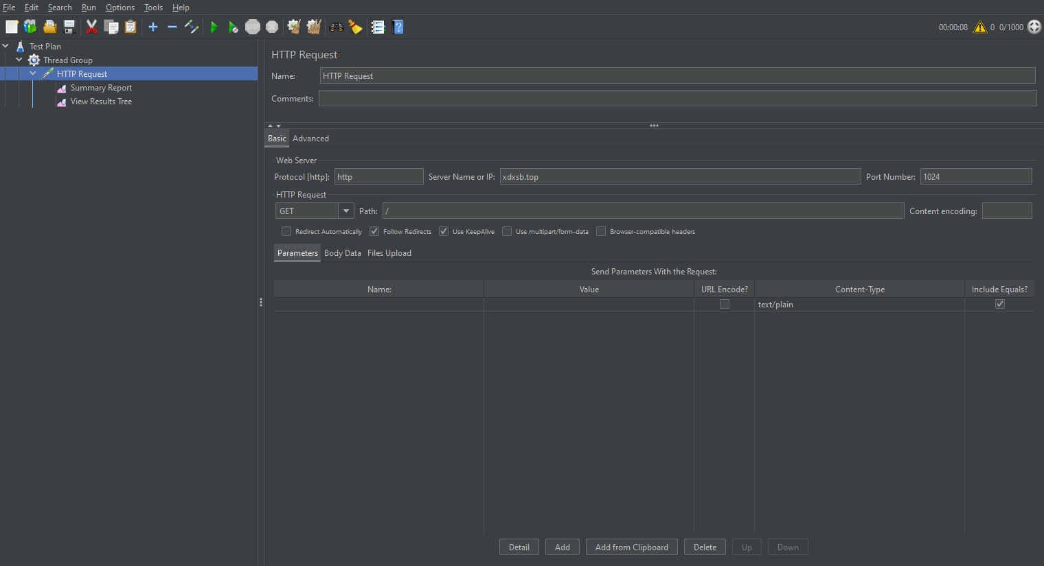 再設(shè)置HTTP請(qǐng)求,填寫(xiě)請(qǐng)求域名,端口號(hào),文件路徑