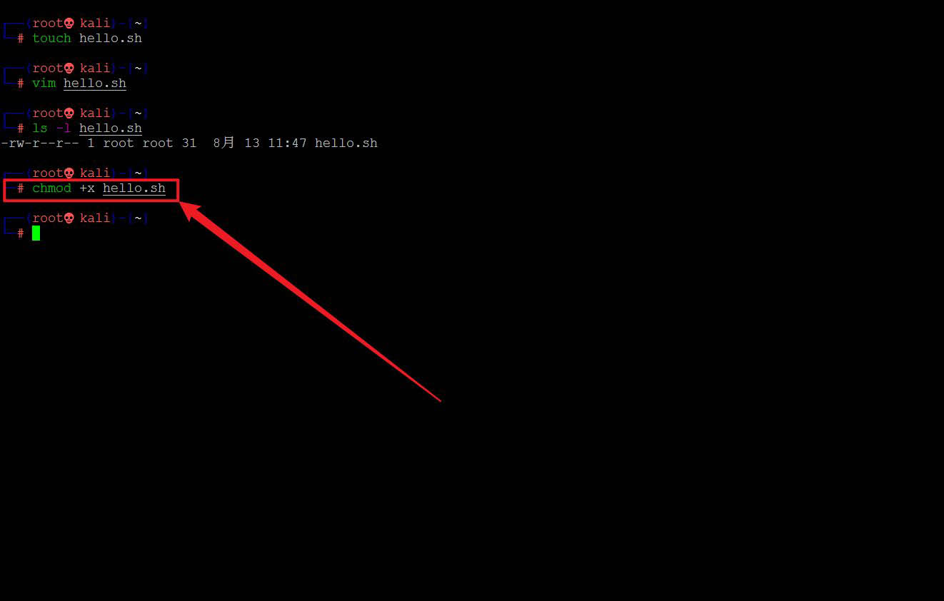 使用chmod命令以及+x參數給文件可執行權限