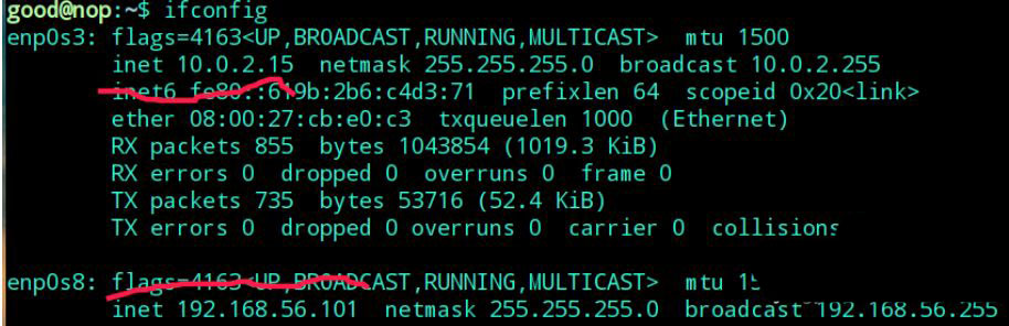 保存完成重新啟動虛擬機,這時候虛擬機里相當于有兩張網卡,一張實現與主機通信。一張實現訪問外網,這時候查看ip地址已經有兩個了,如下圖所示。
