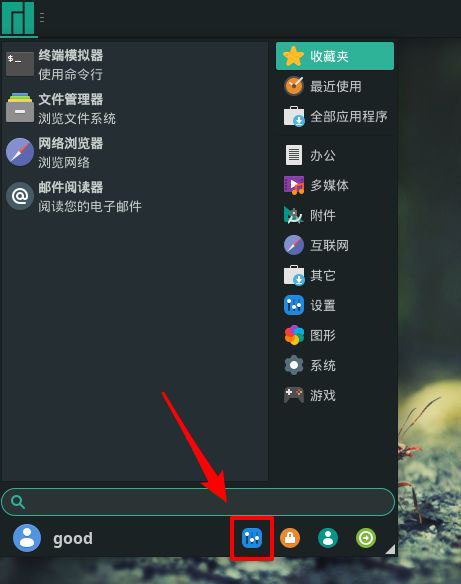 在Manjaro桌面上點左上角的whisker菜單按鈕。