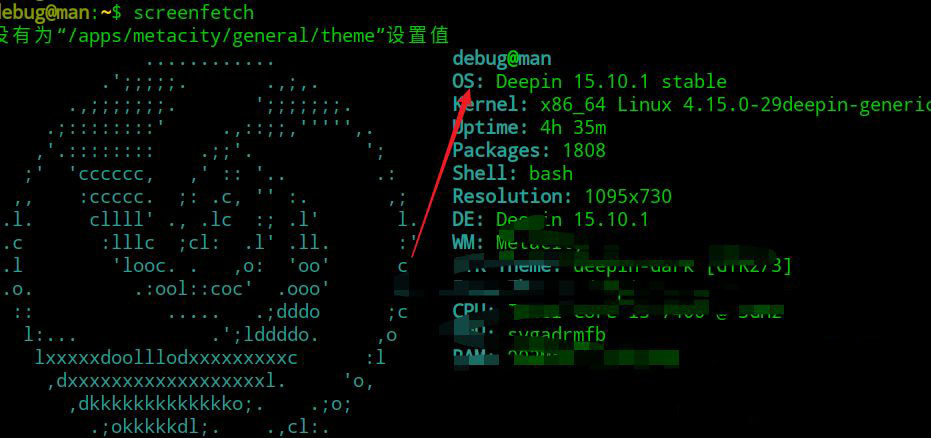 之外還可以安裝screenfetch,可以圖形化的顯示deepin linux的系統(tǒng)版本信息。