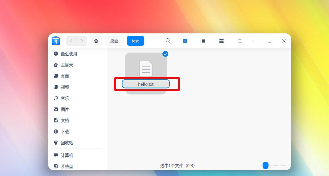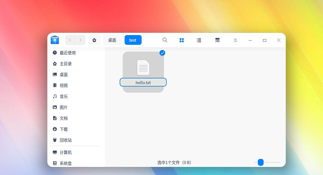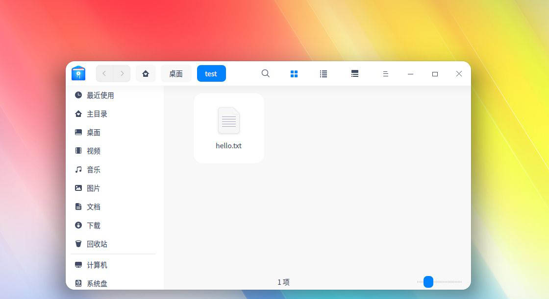 首先我們進入deepin linux的桌面,打開我們文件所在位置的文件夾窗口,比如這里的hello文本文件。