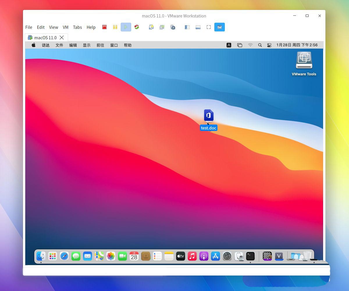 現在我們發現,就可以直接把deepin linux桌面上的文件直接拖放到我們的macosx11虛擬機中了。