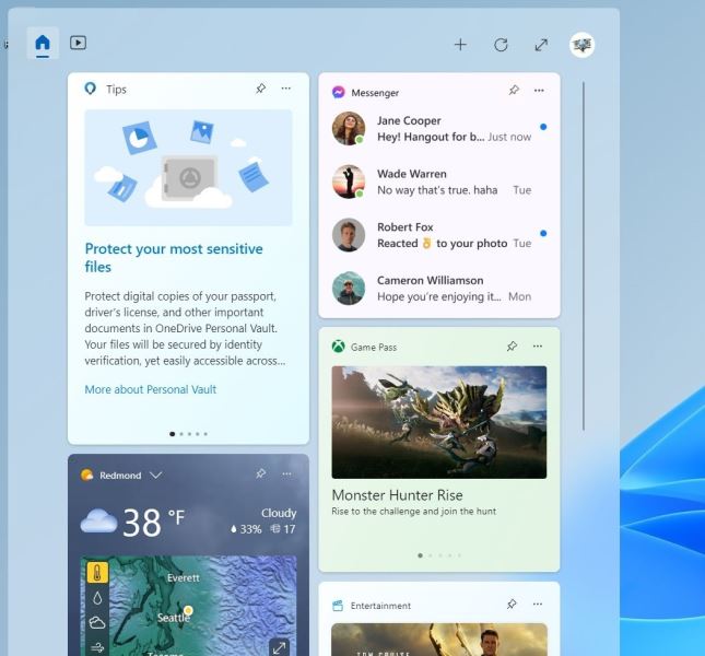 Windows 11 中的全屏小組件
