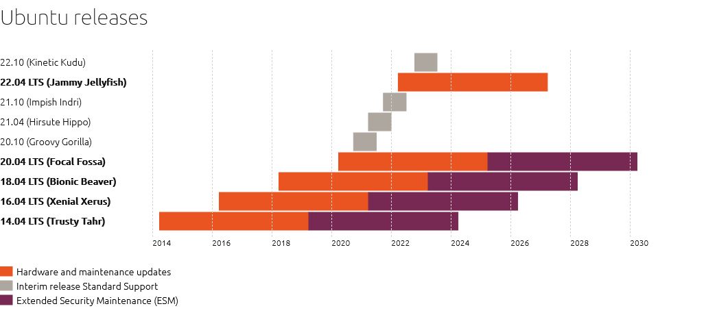 用戶可能需要先升級(jí)到 Ubuntu 20.04 LTS,然后再升級(jí)到 22.04 LTS。如果你只想升級(jí)一次,那么 Ubuntu 20.04 LTS 可以一直使用到 2025 年 4 月。