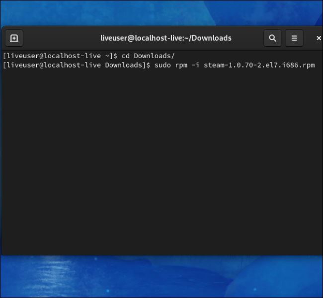 轉(zhuǎn)到此鏈接并下載Steam RPM 文件。然后打開終端并移動到您下載文件的目錄。