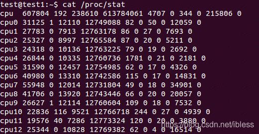 在/proc/stat中可以查看每一個CPU的使用情況的,如下圖: