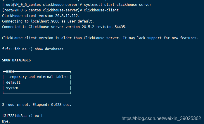 yum install -y clickhouse-server clickhouse-client# 檢查是否安裝成功yum list installed "clickhouse*"# 啟動clickhousesystemctl start clickhouse# 進入cli,啟動clickhouse客戶端clickhouse-client