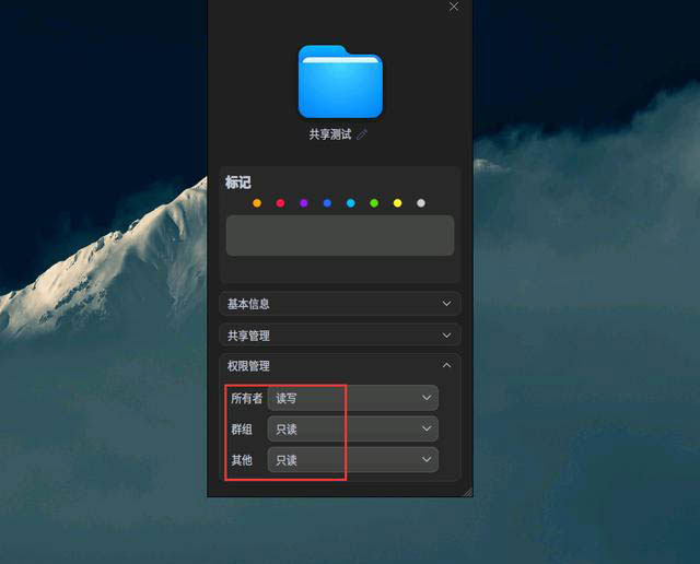 6、修改共享文件夾的權限,把群組和其他的權限改為“只讀”