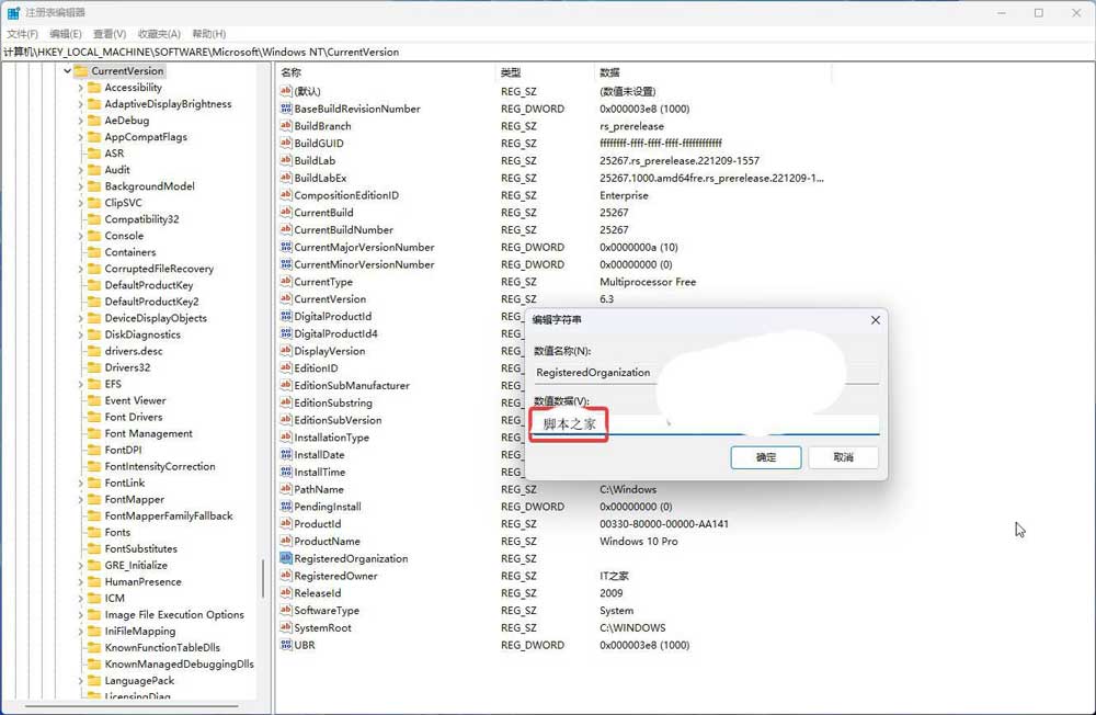 5、雙擊 RegisteredOrganization,修改為你想要的組織名稱(chēng),例如這里小編修改為“”