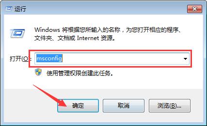 第一步在win7系統上按win+R鍵打開運行,輸入“msconfig”,點擊確定,如下圖所示: