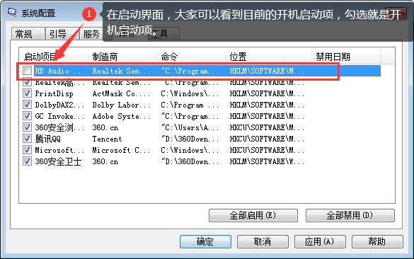 2.在啟動項選擇需要關閉的開機啟動軟件;